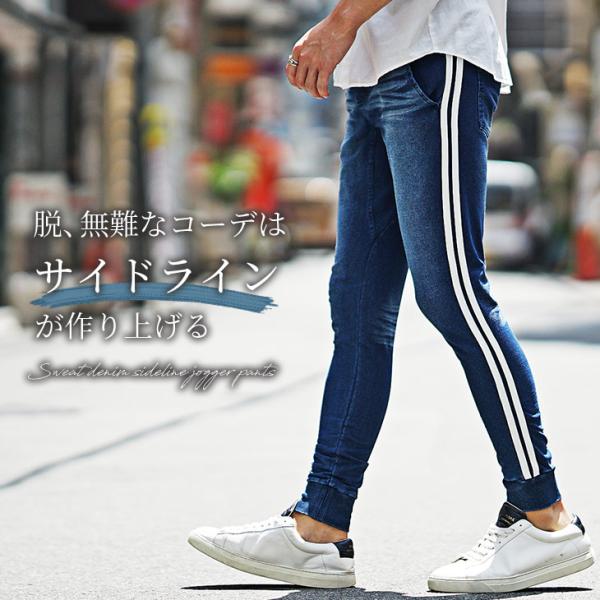 ボトムス メンズ スウェットパンツ メンズ カットデニム ジョガーパンツ メンズ サイドライン 夏 春 お兄系 オラオラ系 ちょいワル