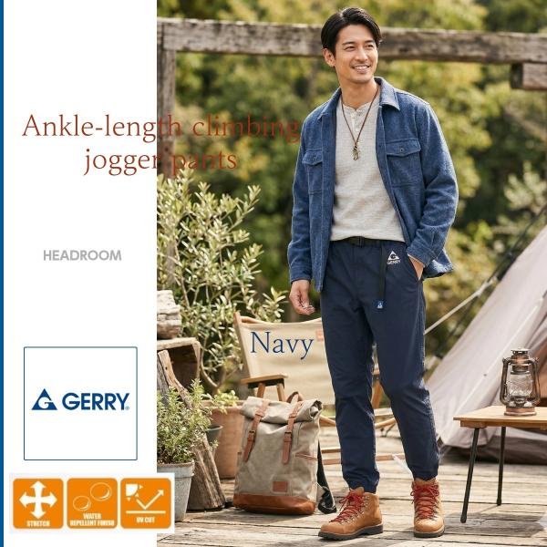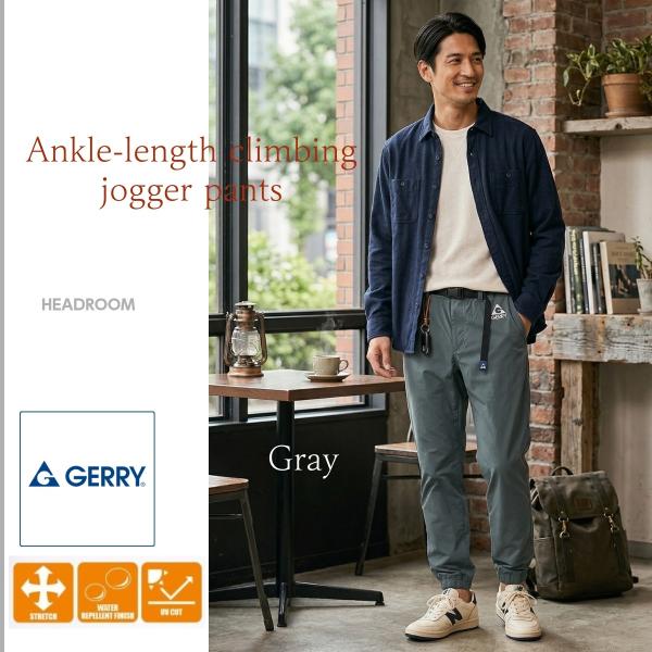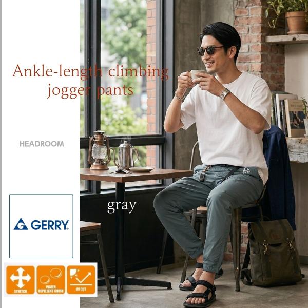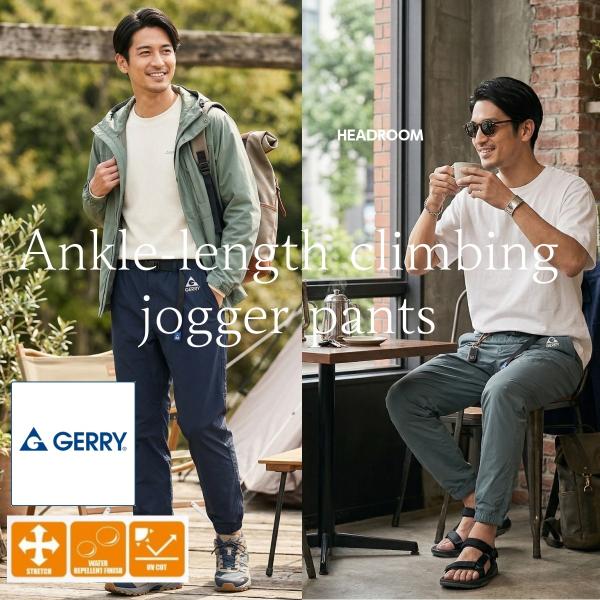 GERRY ジョガーパンツ メンズ ストレッチ テーパードパンツ イージーパンツ 裾リブ アンクル丈 撥水 UVカット ウエストゴム スリムパンツ 春 夏 秋