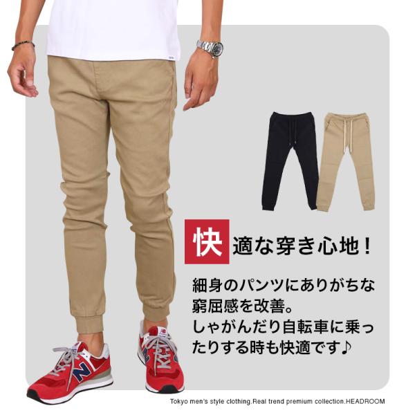 ジョガーパンツ メンズ チノ ストレッチ 毛玉が出来ない 美脚 スリム アンクル丈 イージーパンツ スリム 細目