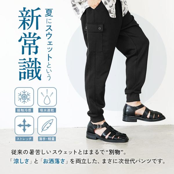ジョガーパンツ メンズ 冷感 ひんやり スウェット カーゴパンツ テーパードパンツ スエット 接触冷感 ブラック マイノリティ minority