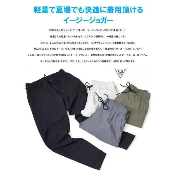 2026年春夏 EDWIN エドウィン F.L.E イージー ジョガーパンツ 軽量ストレッチ イージーパンツ メンズ 立体裁断 ウエストゴム ストレッチ FLE 送料無料 ES902