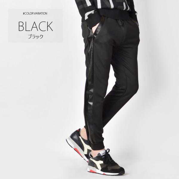 ジョガーパンツ メンズ ジャージ スウェットパンツ ライン フェイクレザー 切替 ロゴ モード系 ストリート系 サーフ系 ビター系 黒 グレー ブラック M L XL