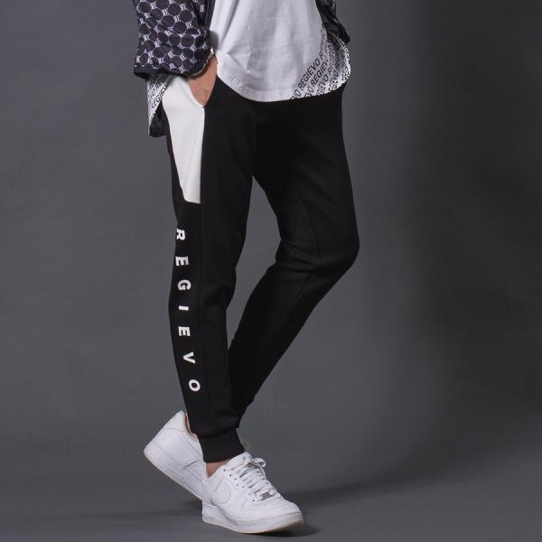 配色ジョガーパンツ メンズ オールシーズン スポーティ シンプル ワンポイント ホワイト ブラック 白 黒 M L XL REGIEVO レジエボ