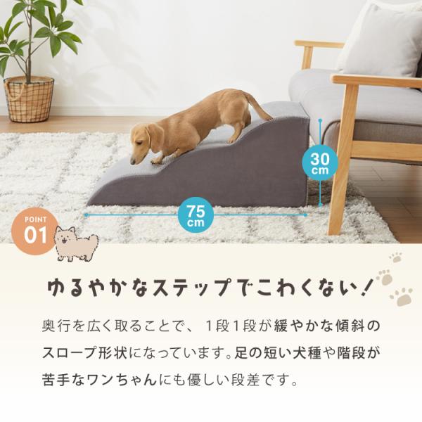 ドッグステップ 3段 スロープ 幅45cm ドッグスロープ ウレタン 撥水 クッション 踏み台 ステップ ペットステップ 室内犬 シニア犬 老犬 介護用品
