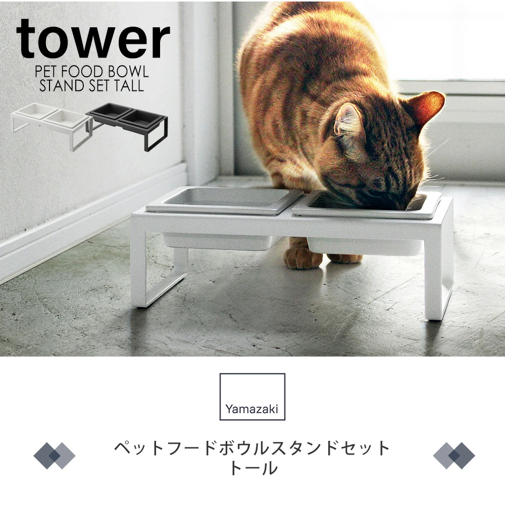 山崎実業 公式 ヌークス ペットフードボウルスタンドセット トール nooks おしゃれ ペット用食器 セット エサ台 水入れ 水 高さ10 4744 4745