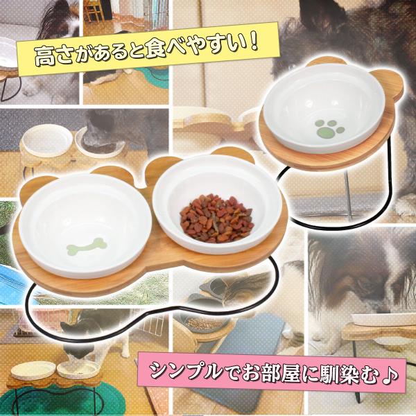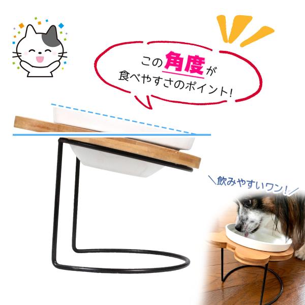 えさ皿 猫 犬 食器 えさ 皿 餌入れ フードボウル ペット 猫用 犬用 ご飯皿 お皿 水飲み 食器台 食べやすい 傾斜 陶器 アイアンバンブースタンドダブル