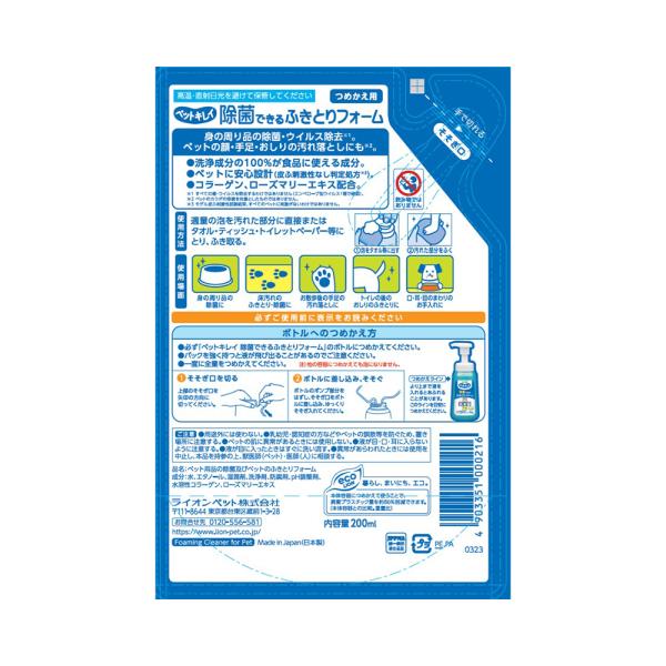 ライオン ペットキレイ 除菌できる ふきとりフォーム 詰め替え用 200ml