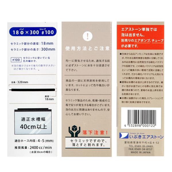 エアーストーン いぶきエアストーン セラミックエアストーン 直径18×300 #100