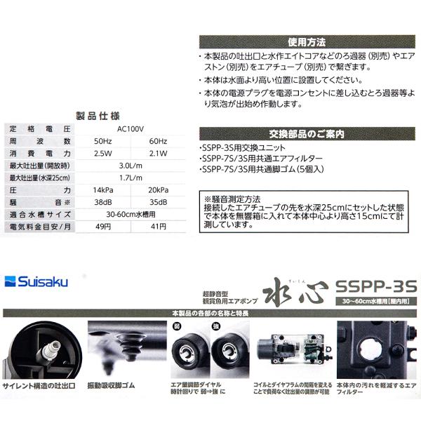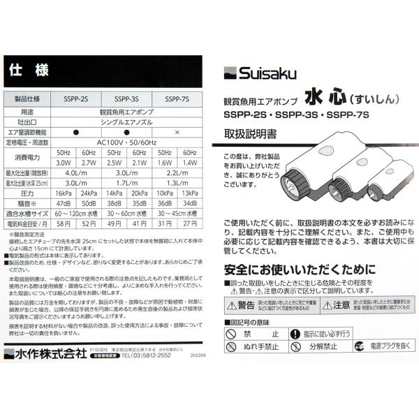 水作 エアーポンプ 水心 SSPP−3S エア量ダイヤル調整式 30〜60cm水槽用