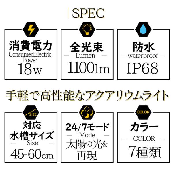 アクアリウム LEDライト 1000lm 水槽 自動 調色 調光 タイマー付 防水 IP68 45cm 60cm 高演色 Ra85 白 赤 青