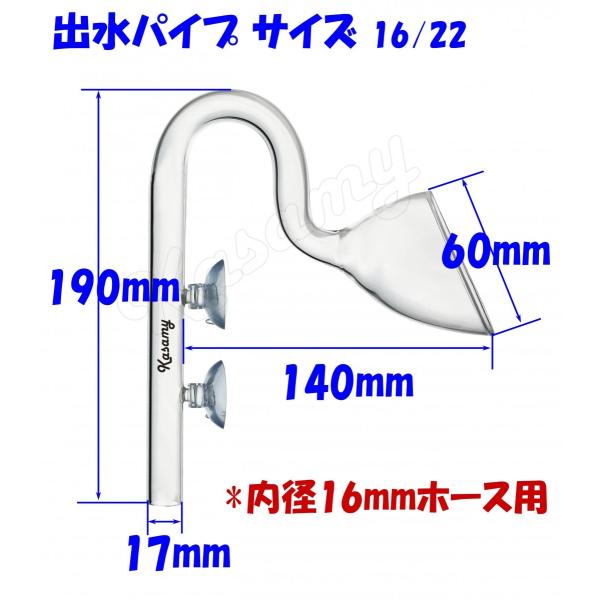 水槽用 リリィ型 出水 クリア ガラスパイプ 熱帯魚 アクアリウム 水草 16/22 ホース用