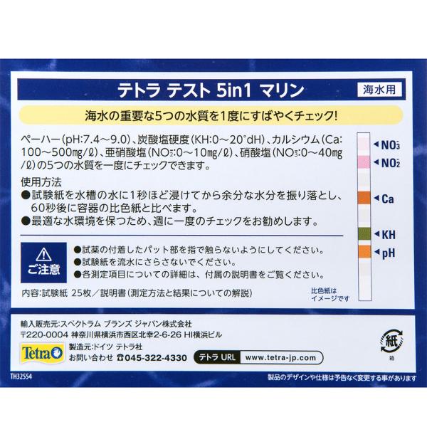 テトラテスト 5in1 マリン試験紙(海水用 海水用 水質検査 テスト 炭酸塩 硝酸塩 亜硝酸塩 カルシウム PH