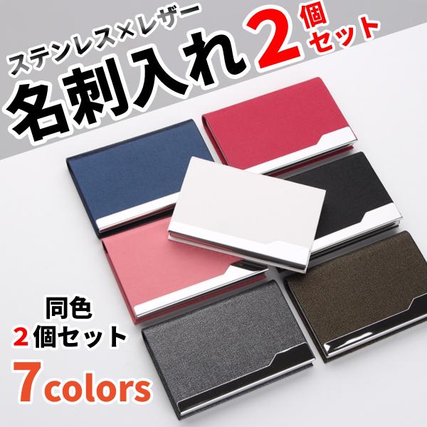 名刺入れ レディース メンズ 名刺ケース 革 薄型 ステンレス カードケース おしゃれ 20代 30代 40代 50代 60代 2個セット
