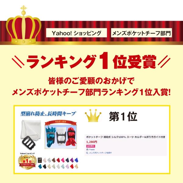 ポケットチーフ 結婚式 シルク100% スーツ ホルダー&折り方ガイド付き