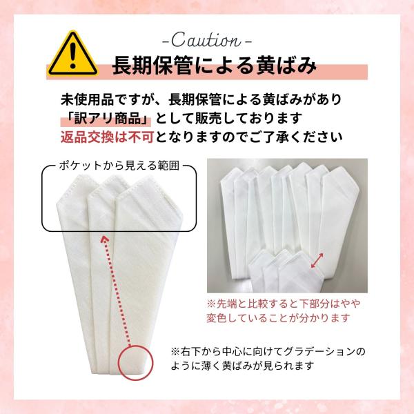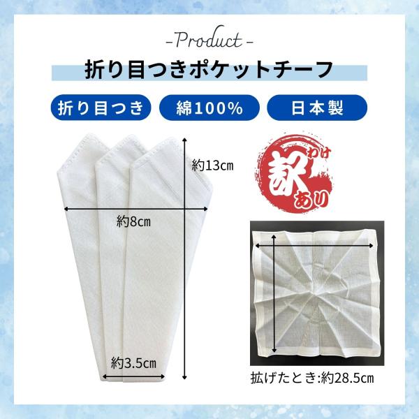 訳あり ポケットチーフ 綿100% 日本製 紳士用 フォーマル コットンチーフ ハンカチーフ 白 ホワイト