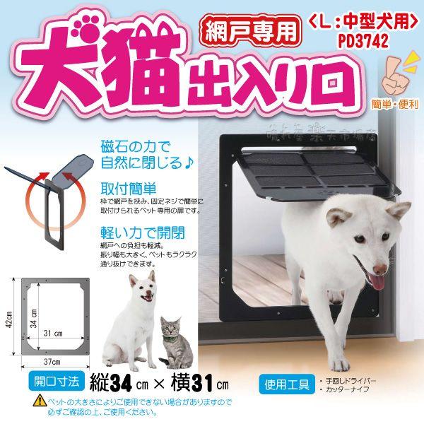 網戸用犬猫出入り口 Lサイズ 送料無料 中型犬用 開口部縦34×横31 PD3742