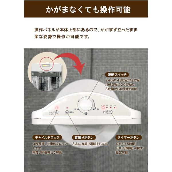 遠赤外線ヒーター シーズヒーター 最大1200W 首振り機能 暖房器具 タイマー 転倒OFF リビング キッチン 台所 脱衣所 電気ストーブ TSH-9201 1年保証 送料無料