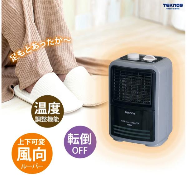 TEKNOS テクノス TSO-604 ミニファンヒーター 温調可 600W シンプル コンパクト