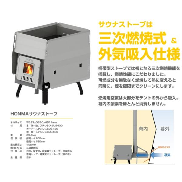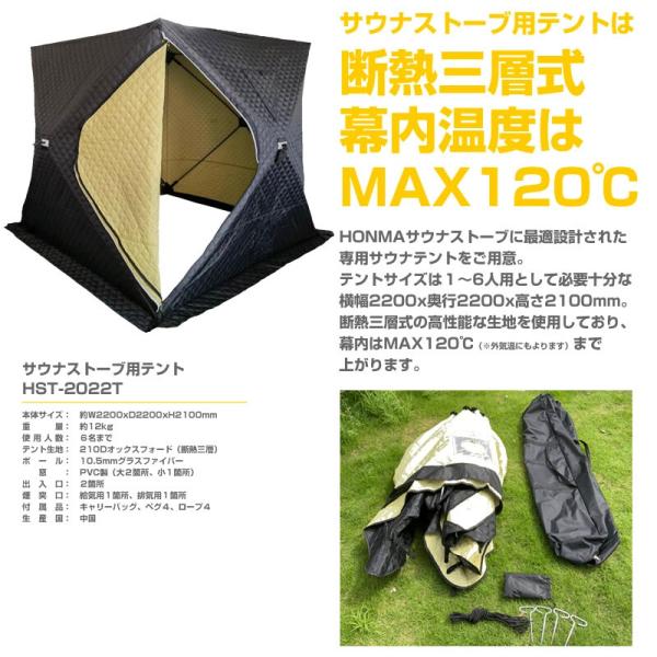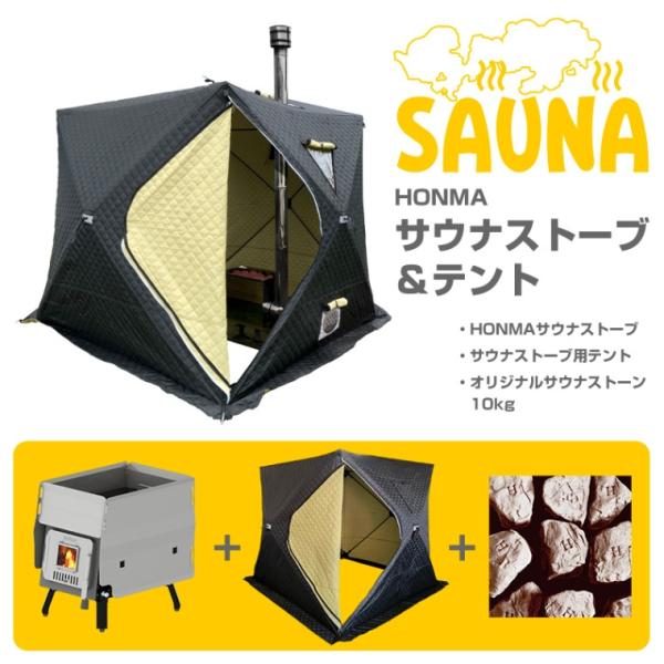 ホンマ製作所 サウナテントセット 1〜6人用 サウナストーブ&テント オリジナルサウナストーン10kg付 HSS-560SP 「4梱包」 「大型便・時間指定不可」
