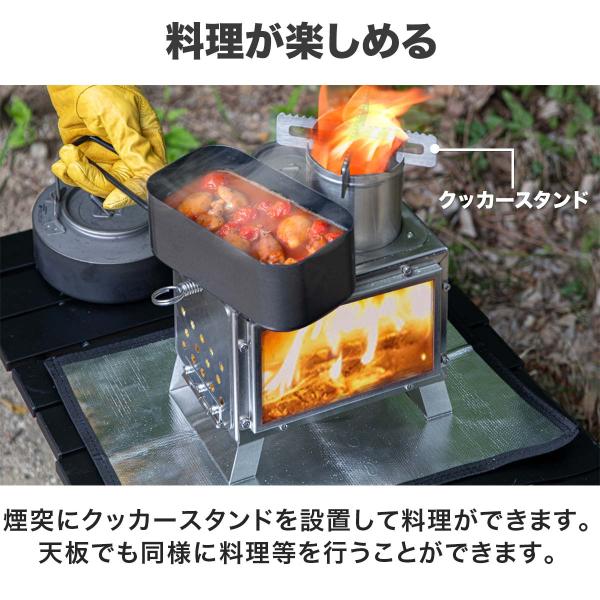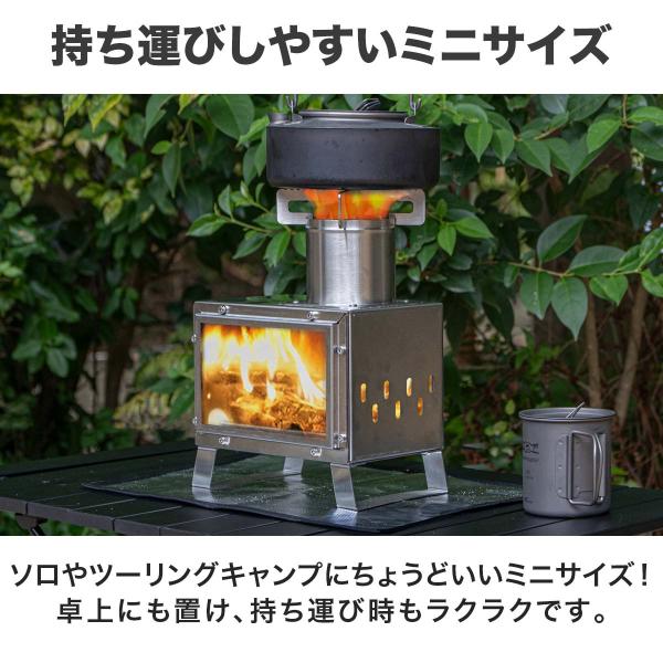 薪ストーブ 小型 ミニ 幅20cm 卓上 ソロ コンパクト FIELDOOR ガラス窓 軽量 ステンレス キャンプストーブ ミニ薪ストーブ 料理 調理 薪 1年保証 送料無料