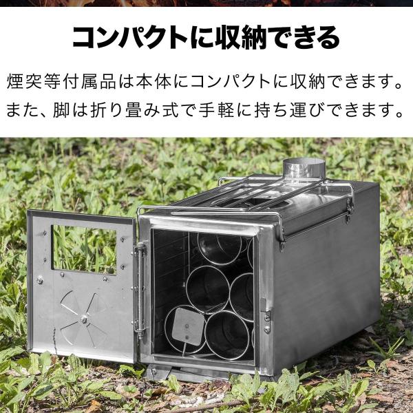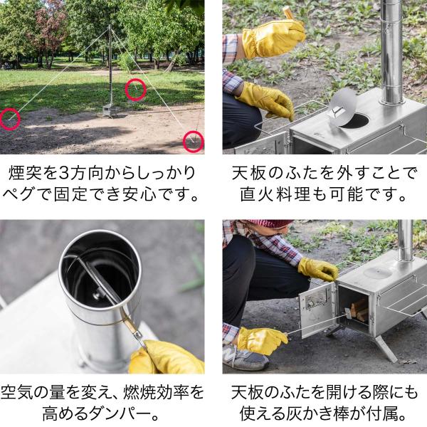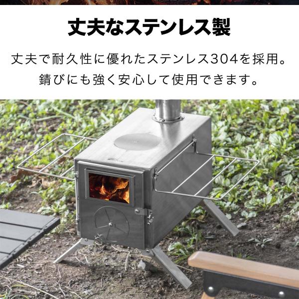 薪ストーブ コンパクト 分割 煙突 210cm 折りたたみ 棚付き 軽量 ステンレス304 FIELDOOR キャンプ 角型 小型 キャンプストーブ 送料無料