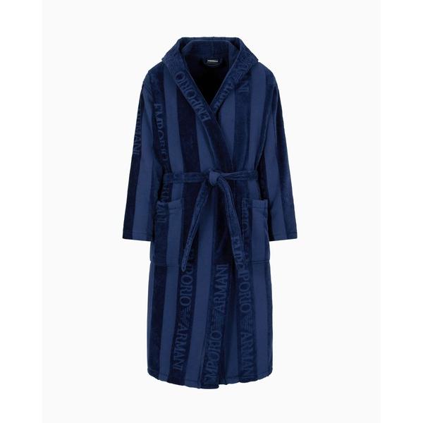 ガウン 「オンライン限定」「エンポリオ アルマーニ」バスローブ テリークロス ストライプ&ロゴ メンズ レディース