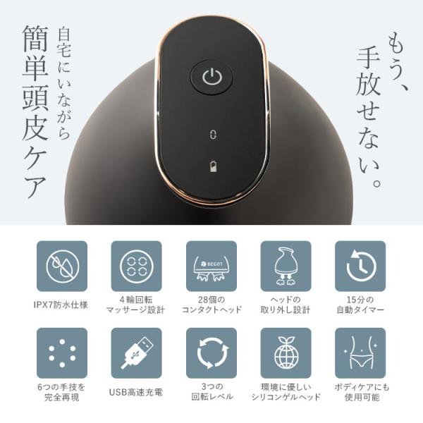 電動頭皮ブラシ ヘッドスパ 頭皮ケア IPX7 防水 BEGOT クリスマス プレゼント 女性 美容 ※ 頭皮マッサージ 頭皮マッサージ器 マッサージ機 ではありません