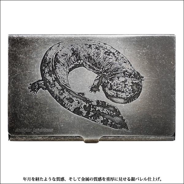 オオサンショウウオ カードケース /名刺入れ/大山椒魚/ハンザキ/有尾類/小物/雑貨/ユーズド加工/銀シルバー/金属/厚さ6mm/約15枚