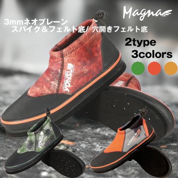 MAGNA(マグナ) ウェーディングシューズ フエルト底 フィッシングブーツ 渓流 磯靴 沢靴 沢登 穴抜き/スパイク 渓流釣り 磯釣り 3mmネオプレーン製 ショート