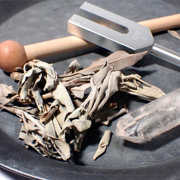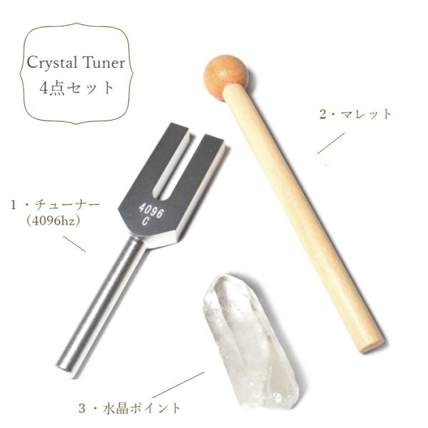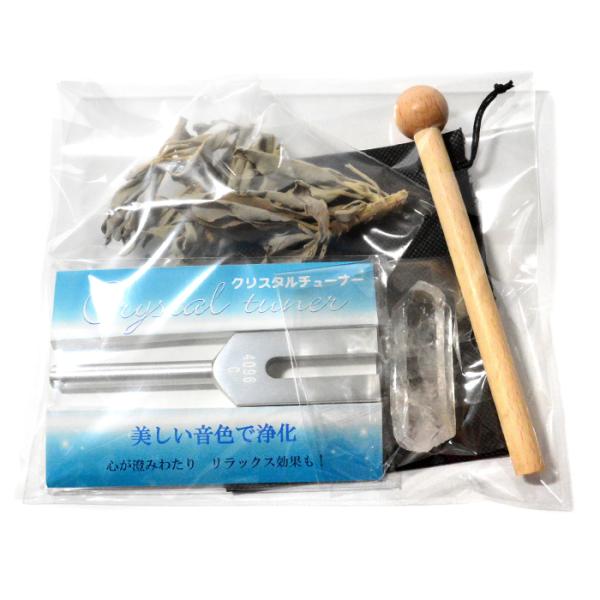 浄化セット パワーストーン クリスタルチューナー 音叉 4096hz 水晶 ポイント マレット セージ 4点セット 置き物 天然石