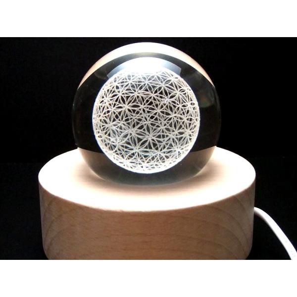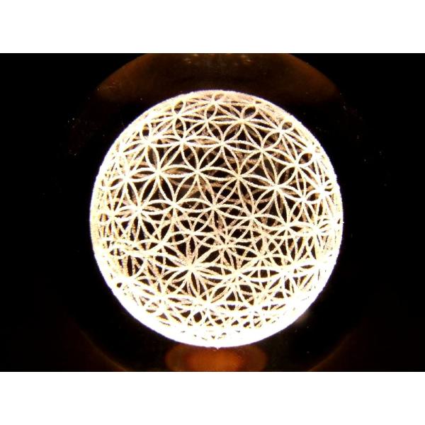 3Dフラワーオブライフ(生命の花) クリスタルガラス製 LED台座付き 直径約67mm LEDライトで幻想的に浮かび上がった パワーストーン