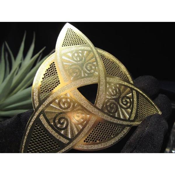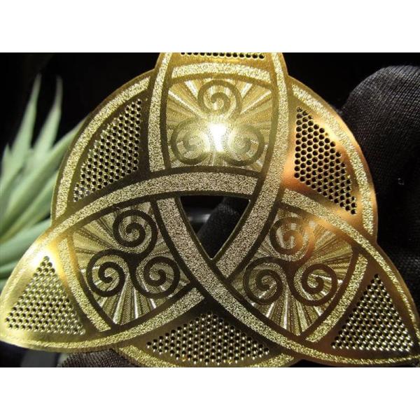 トリケトラ&トリスケル 直径約79mm 厚み約0.6mm 1個売り ゴールドカラー 瞑想・浄化・波動などのヒーリングに 秘めたエネルギーを呼び覚ます エナジーカード