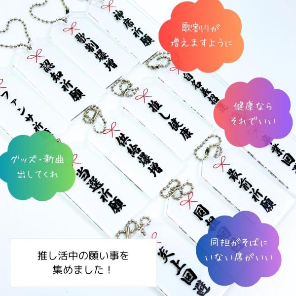 開運推し活お守りキーホルダー アクリル 透明 神席祈願 当選祈願 最前祈願 自名義招運 ファンサ祈願 認知祈願 歌割爆増 供給爆増 同担回避 炎上回避 卒業回避