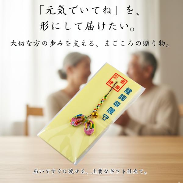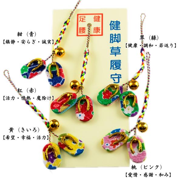 健脚 草履御守 選べる5色 宝来鈴 健康御守り 国内検品済 長寿祝い お見舞い 専門店 グッドタイム お守り ちりめん 根付 杖 バッグ 目印 敬老の日 ギフト
