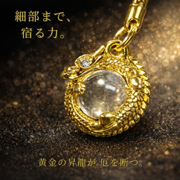 龍神厄除守 黄金昇龍×水晶玉 根付ストラップ|強力魔除け・災難除け・開運祈願 日本製 御守 開運 商売繁盛祈願 ギフト