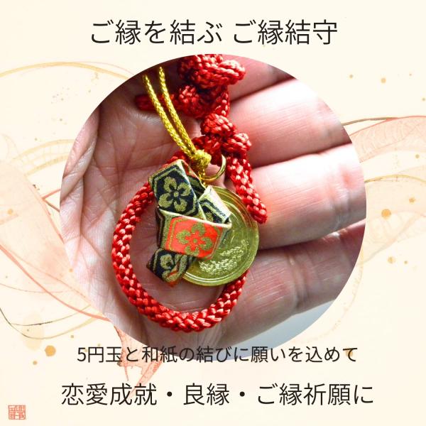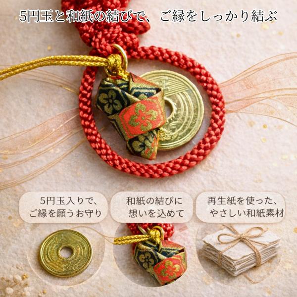 縁結び お守り ご縁結守 5円玉入り 和紙結び 根付け ストラップ 開運 恋愛 良縁 幸運 リサイクル SDGs 和風 プレゼント 赤 紫 ピンク ブルー
