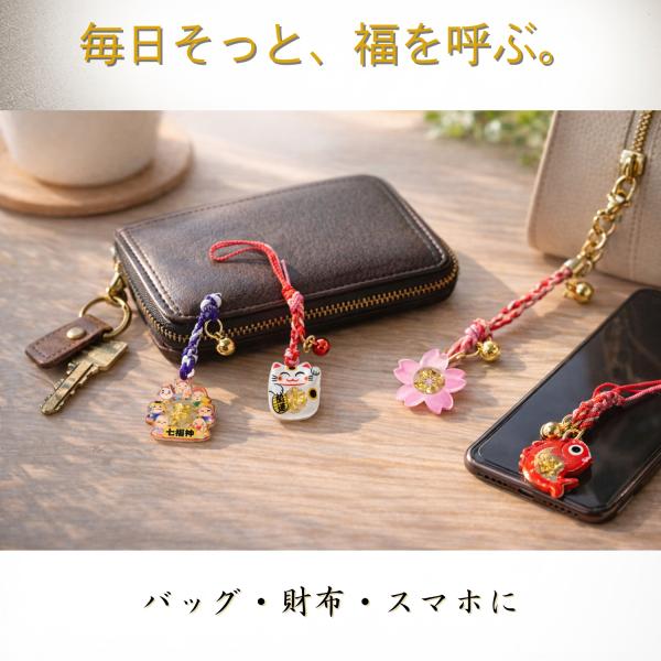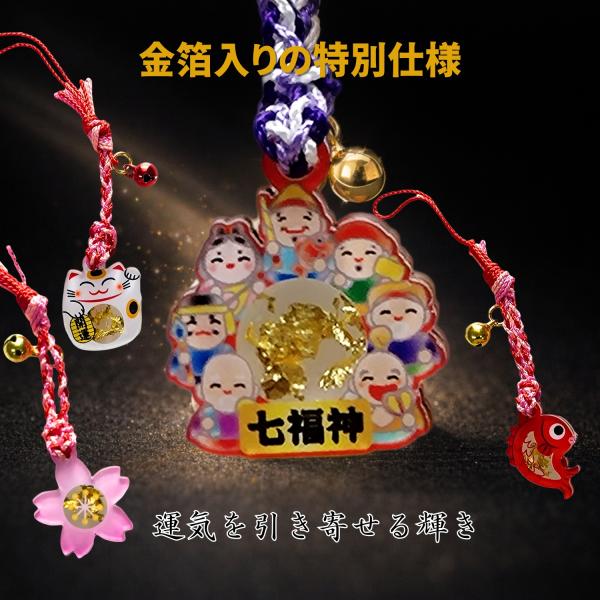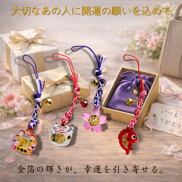 金箔入り 開運御守(招き猫・七福神・めで鯛・桜)|金運上昇 商売繁盛 幸運 開運 お守り ストラップ 根付 合格祈願|母の日 父の日 ギフト
