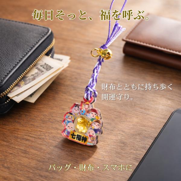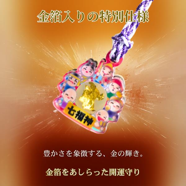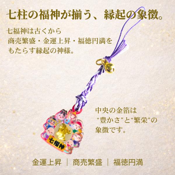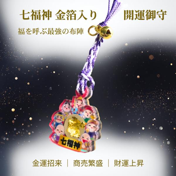 金箔入り 七福神 開運お守り|金運上昇 商売繁盛 福招き 縁起物 ストラップ 根付タイプ ギフト プレゼント ゴールド