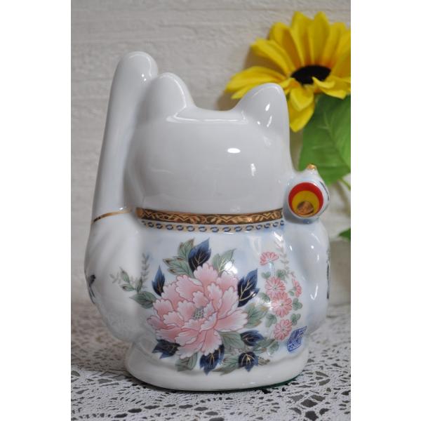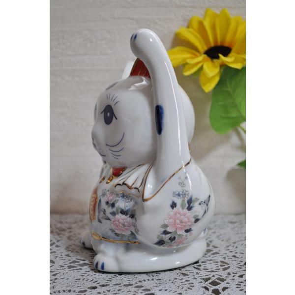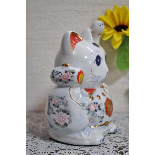 招き猫 (中)左手を上げた合格を招く招き猫・開運アップ・福猫・ 猫置物・オーナメント・オブジェ・ ネコ・花柄猫