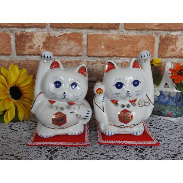 値下げしました 水晶を持った招き猫 (中) 左手を上げた合格を招く?招き猫・福猫・ 猫置物・開運アップ・オブジェ・ 水晶パワーストーンを持ったネコ