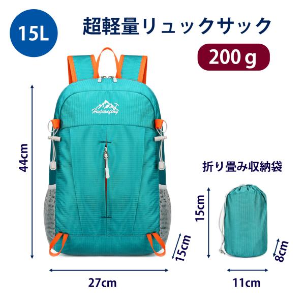 軽量リュックサック 15L 折りたたみ式 コンパクト収納 旅行 ハイキング 登山 キャンプ 防災用 メンズ レディース