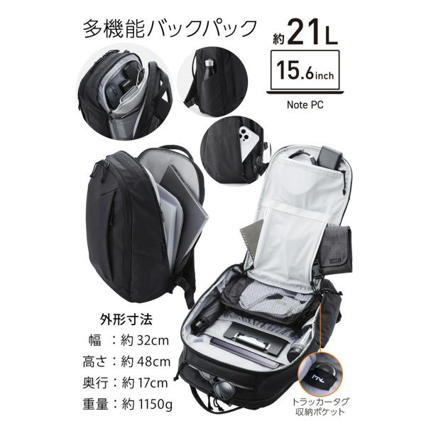 エレコム バックパック 15.6inch 21L MNL CITY PACK CORDURA re/cor コーデュラ リコラー 撥水加工 ブラック ELECOM BM-MNLBP01NBK