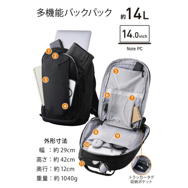 エレコム バックパック 14inch 14L MNL CITY PACK LITE CORDURA Ballistic コーデュラ バリスティック 撥水加工 ブラック ELECOM BM-MNLBP05BK