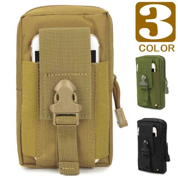 スマホポーチ ベルト キャンピング アウトドア ミニポーチ ミリタリー風 腰ベルト通し 装着 バッグ 財布 マルチポーチ スマホ カギ 収納 3色展開 送料無料