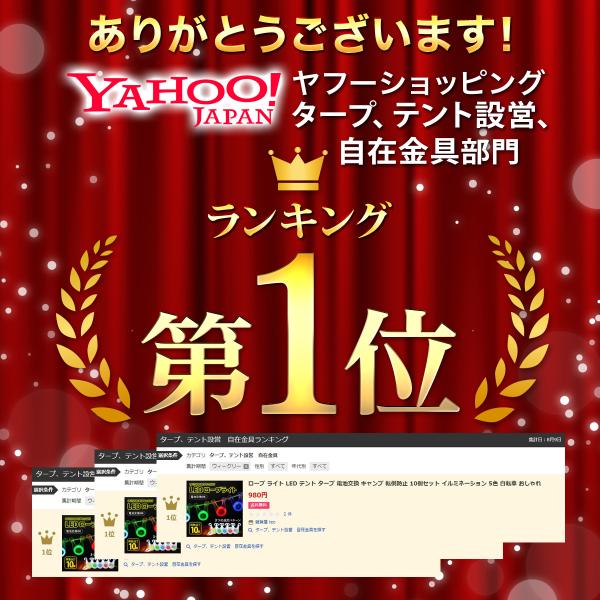 ロープ ライト LED テント タープ 電池交換 キャンプ 転倒防止 10個セット イルミネーション 5色 自転車 おしゃれ 爆買