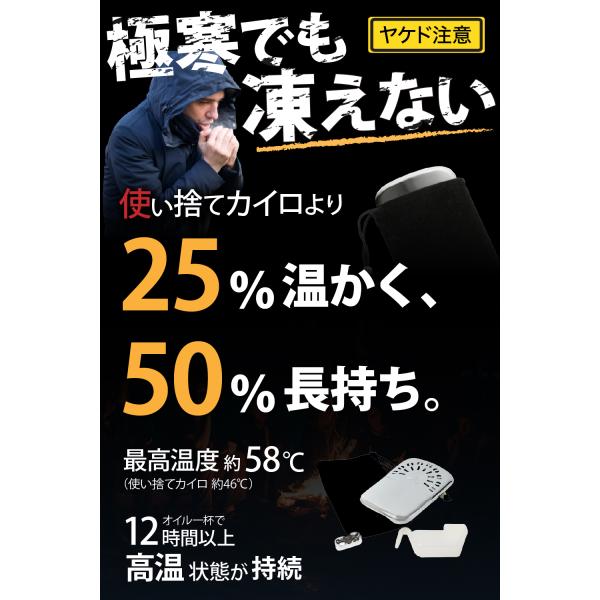【極寒でも凍えない】ハンディウォーマー 使い捨てカイロより25%も温かく50%長持ちて経済的 オイルカイロ ハンドウォーマー キャンプ