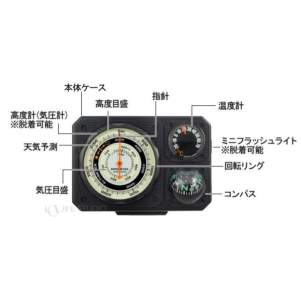 コンパス 方位磁石 高度計 気圧計 温度計 トラベルエイド 6 in 1 オイルコンパス 登山 釣り 方位磁針 ベルト 携帯