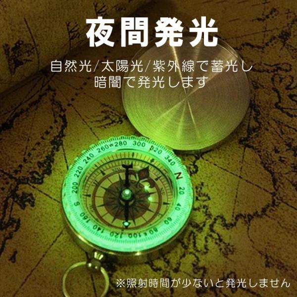 銅製コンパス 暗闇で発光 蓄光 蛍光 キャンプ 登山 ハイキング アウトドア 方位磁石 羅針盤 マップ用コンパス 小型 軽量 コンパクト 持ち運び便利 贈り物 CPSG50