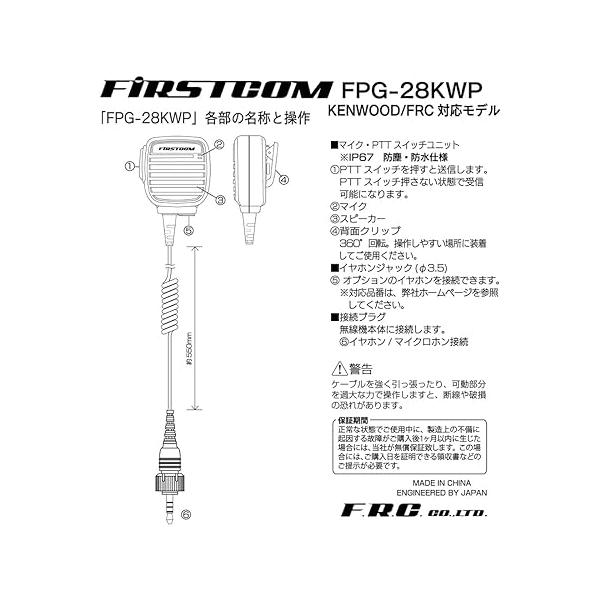 BC-27R スタンダード アイコム アルインコ 対応 高耐久・PRO仕様 マイクロフォン型 ハンドマイク エフ・アール・シー FIRSTCOM FPG-28WP エフアールシー