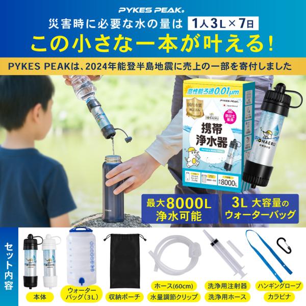 「めざましテレビで紹介」携帯浄水器 1年保証 防災 アウトドア 災害 備蓄 保存 非常食 水筒 ろ過器 ポータブル 旅行 登山 断水 おしゃれ パイクスピーク
